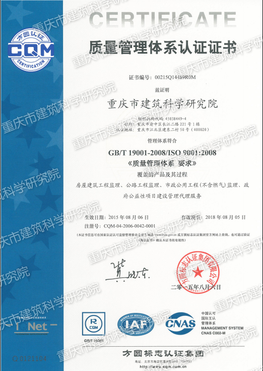 质量管理体系认证证书