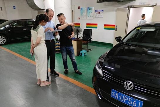 检查组与江南分中心值班人员检查球友会手机版车辆停放情况