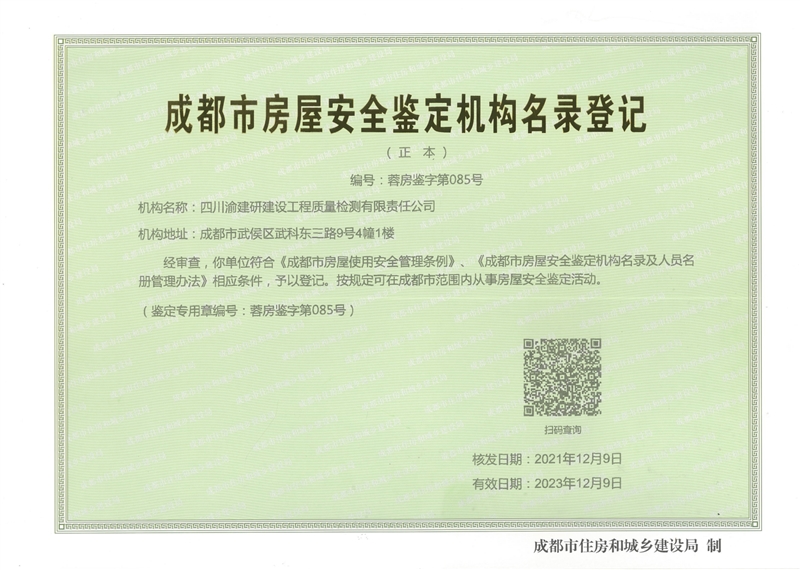 成都市房屋安全鉴定机构名录登记