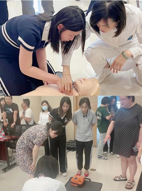 培训分为理论讲解、现场演示、实践操作三个部分。重庆医科大学附属第一医院急救专家通过图文并茂的课件、生动形象的教学案例,用通俗易懂的语言从最基本的救护知识和理念入手,重点对心肺复苏、AED(自动体外除颤仪)的使用、创伤止血包扎、气道异物梗阻等意外伤害的应急救护方法进行了详细讲解。