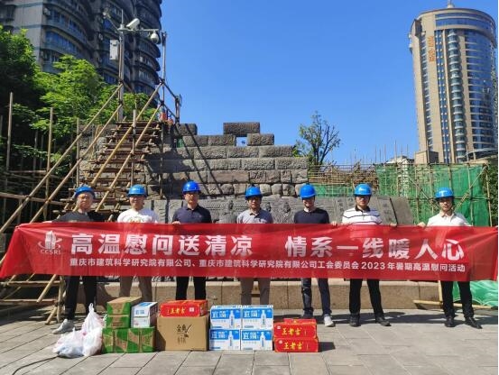 时值八月,气温久高不下,为进一步落实高温防暑工作,为一线员工身心健康提供保障,8月9日,重庆设计集团所属子球友会qiuyouhui(中国)重庆市球友会qiuyouhui(中国)科学研究院有限公司党委委员、副总经理、总球友会手机版师张京街同志赴检测七公司承担的通远门城墙抢险加固球友会手机版开展“夏日送清凉”慰问活动,为烈日中坚守岗位的职工送上防暑降温物品,并致以诚挚的关怀与问候。