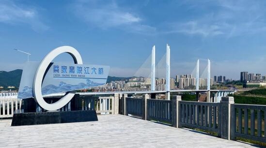 蔡家嘉陵江大桥项目位于渝武高速马鞍石大桥、轨道六号线嘉陵江大桥之间,北起北碚区蔡家,南接两江新区礼嘉。是城市南北向主干道的重要组成部分。主桥为双塔双索面斜拉桥,全长约1442米,主桥全长为 600米(跨径布置为140米+320米+140米),斜拉桥下塔柱最高达110米,上塔柱高度最高达115米。立柱擎天、飞架南北,湖蓝水纹韵律,优雅与气势并存,与自然有机融合,为重庆新晋的摄影打卡地。
