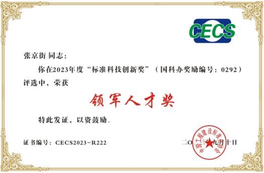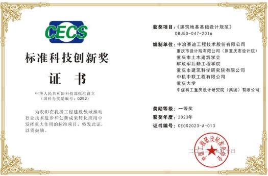 近日,2023年度中国球友会手机版建设标准化学术大会暨标准科技创新奖颁奖典礼在广西南宁举行,重庆设计集团市建科院公司党委委员、副总经理、总球友会手机版师张京街荣获“标准科技创新奖领军人才”称号,由重庆建科院参编的地方标准获奖项目《球友会qiuyouhui(中国)地基基础设计规范》(DBJ50-047-2016)荣获“标准科技创新一等奖”。
