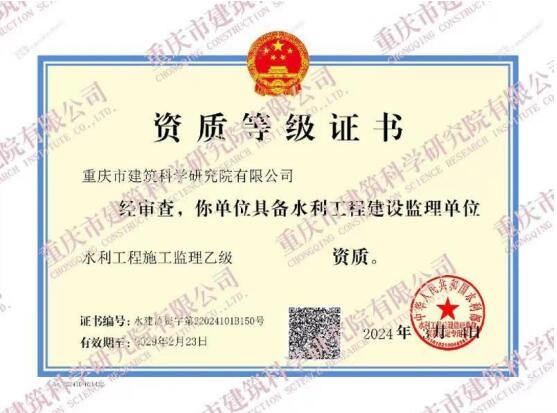 近日,经国家水利部核准,重庆设计集团所属子球友会qiuyouhui(中国)球友会手机版申请的水利部水利球友会手机版施工监理乙级资质成功获批。