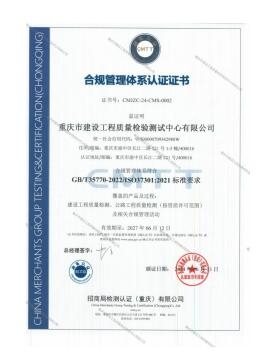 近日,重庆设计集团市建科院公司检测中心顺利通过招商局检测认证(重庆)有限公司合规管理体系审核,并获得合规管理体系GB/T35770—2022国家标准和ISO37301:2021国际标准认证证书,标志着检测中心在合规管理体系建设方面迈上发展新台阶。