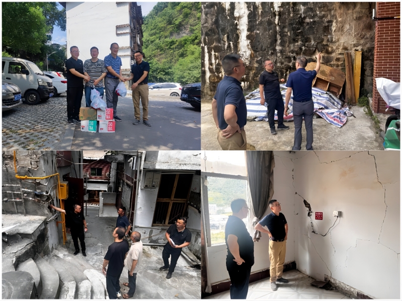 慰问组一行走访了武隆县多个项目现场,为奋战在烈日下的职工送上防暑药品及清凉饮料,了解关怀一线人员工作、生活情况,对高温下坚守岗位的一线工作人员给予充分肯定和感谢。冉龙彬董事长、张京街副总经理带队深入房屋检测鉴定现场,就现场检测、结构安全风险、应急处理、结构分析报告、鉴定结论、自动化监测、加固方案制定等风险点提出了工作要求,并与武隆区住建委相关领导进行了工作沟通和交流。