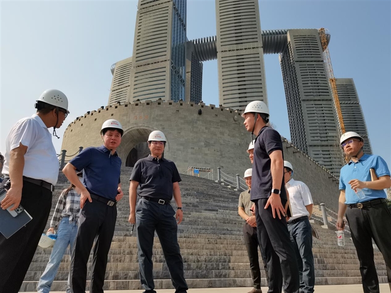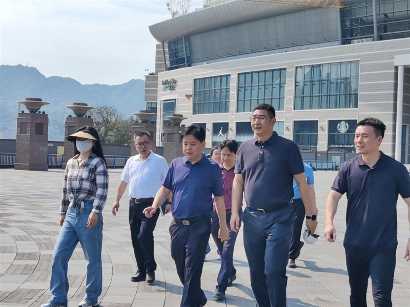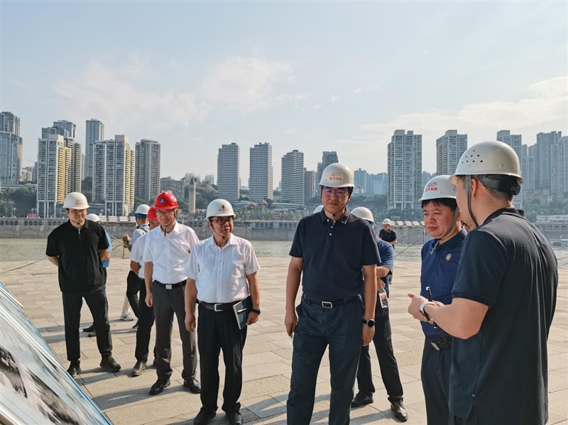 石飞总经理一行自朝天门广场出发,沿广场两侧楼梯行至古渝雄关牌匾处,经180平台城门洞、大梯道,实地察看了项目现场建设情况,听取了项目建设情况的汇报,并同项目人员进行了深入交流。