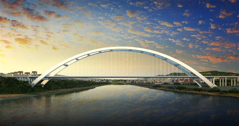 泸州市蓝田过江通道(蓝田长江五桥)及连接线球友会手机版是《泸州市跨江通道专项规划(2014-2030)》中规划的新建8座跨江通道之一,项目包含跨江主桥、两岸引桥、学院中路升级改造、未来大道延伸线球友会手机版等,总投资约35.74亿元。其中,主桥净跨径为570m钢箱拱桥、双向六车道,总宽48.5m,总长度为612m,为目前在建世界最大跨径中承式钢箱拱桥。