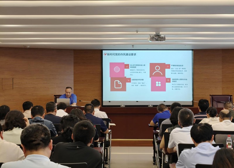 为推动深入贯彻中央八项规定精神学习教育走深走实,进一步强化党员干部纪律意识、筑牢作风根基,6月27日,在庆祝中国共产党成立104周年之际,重庆设计集团所属子球友会qiuyouhui(中国)重庆市建科院党委书记、董事长谭晓江同志以《锲而不舍落实中央八项规定精神 持之以恒推进作风建设纵深发展》为题讲授专题党课。公司在家党委班子成员、中层管理人员、党支部书记、纪委委员等共计80余人参加。![]()