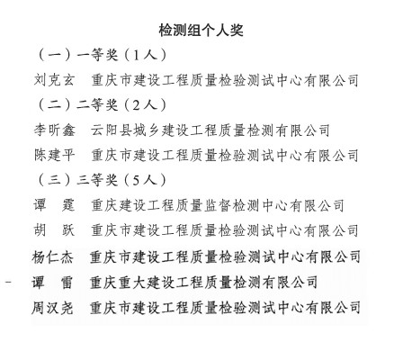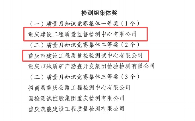 市建科院所属重庆建设球友会手机版质量监督检测中心有限公司、重庆市建设球友会手机版质量检验测试中心有限公司在检测组比赛中表现突出,分别摘得检测组集体奖一等奖和检测组集体奖二等奖。