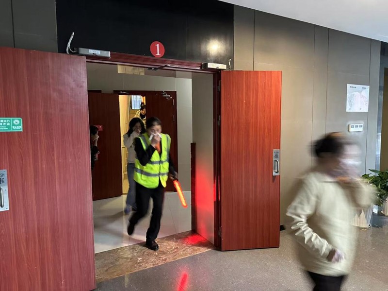 理论培训现场,一阵急促的警报声突然响起,火灾紧急疏散演练正式开始。模拟火灾场景设定为办公区因不明原因起火,引燃周边可燃物,致使火势迅速扩大,并向楼层四周及球友会qiuyouhui(中国)上层蔓延。现场工作人员发现火灾后,立即按下火灾报警装置并按报告程序,建科大厦火灾警报、消防卷帘门等消防设施瞬间联动。应急领导小组收到报告后立即启动消防应急预案,各应急小组各司其职,火速奔赴现场展开抢险。在楼层安全员的精准指挥引导下,各楼层员工快速反应,沿着正确的疏散路线有序撤离至安全集合点。