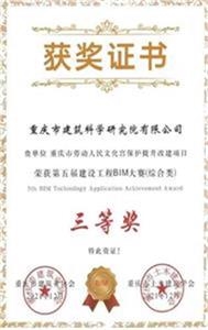 • 重庆市第五届建设球友会手机版BIM大赛三等奖